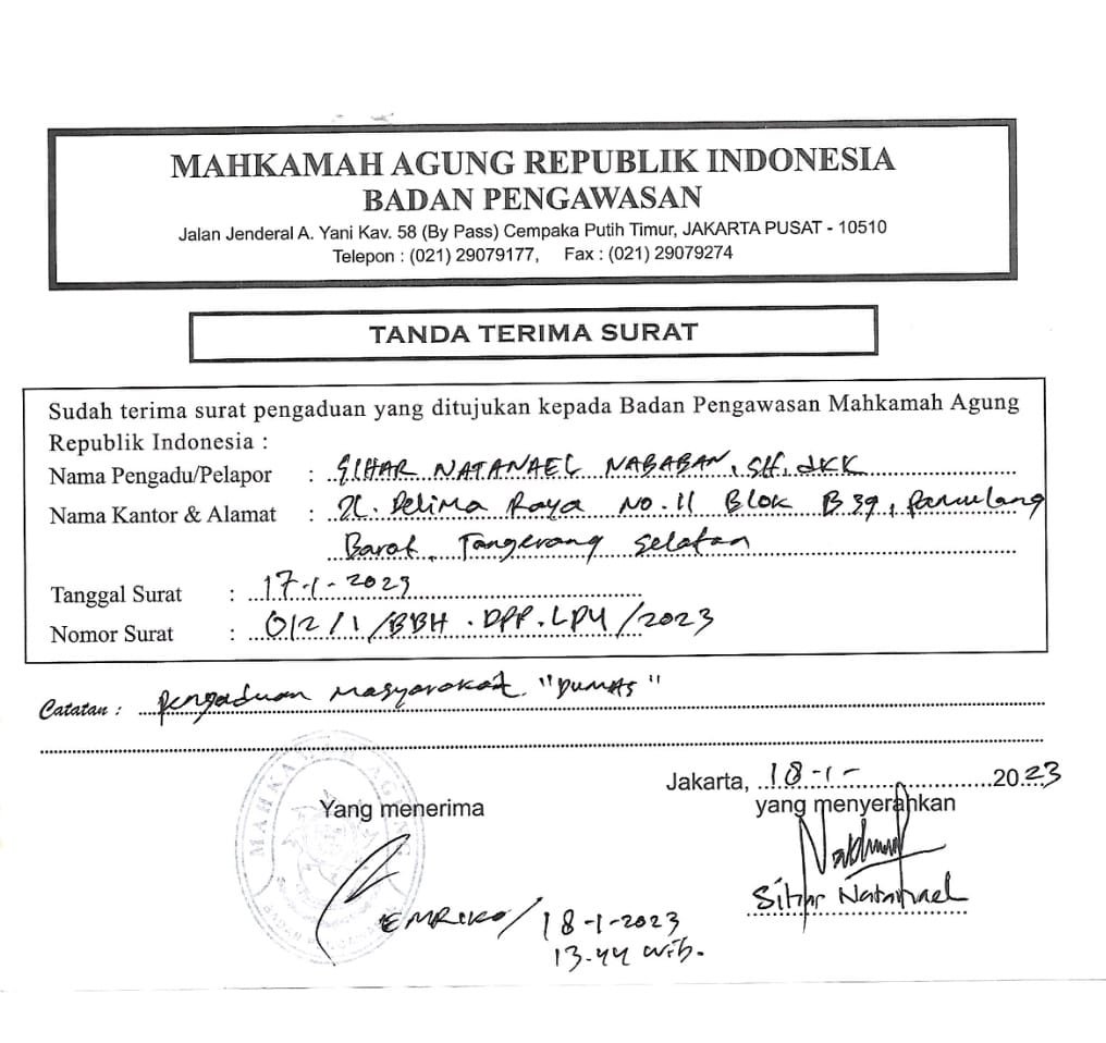 Oleh karena adanya dugaan perampasan hak masyarakat yg melampaui wewenang, kuasa hukum masyarakat desa pendowo limo yaitu LP4 ( Lembaga Pengawasan Penyelenggaraan Pelayanan Publik) telah mendatangi langsung ke Jakarta membuat DUMAS ” Pengaduan masyarakat kepada Menkopolhukam tertanggal 18 Januari 2023 dan Badan Pengawasan Mahkamah Agung tertanggal 18 Januari 2023 yg diterima langsung oleh staff dari Badan Pengawas Mahkamah Agung. R.I