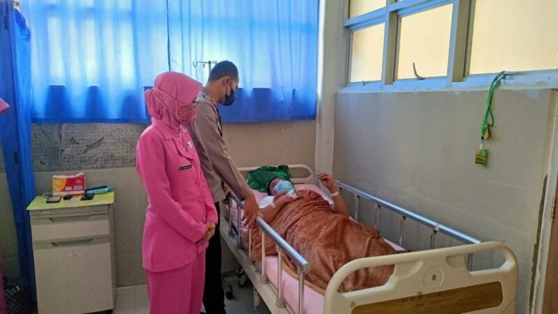SOPPENG — Sebagai bentuk empati kepada personil, Kapolres Soppeng Akbp Mohammad Roni Mustofa S.I.K M.I.K menjenguk salah satu personil yang sedang sakit di RSUD Latemmamala Kec. Lalabata Kab. Soppeng, Senin 24 Januari 2022.