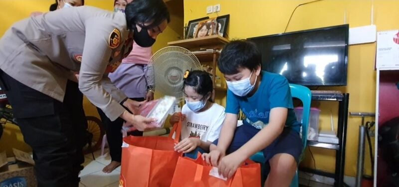 JAKARTA, Dua anak yatim yang ditinggalkan orang tuanya akibat terpapar Covid-19 di kawasan Grogol Petamburan, Jakarta Barat, mendapatkan bantuan sembako dari personil Polsek Tanjung Duren.