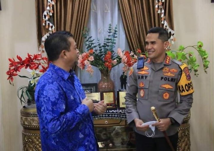 SAMARINDA — Kepala Kepolisian Resor Kota (Polresta) Samarinda Kombes Pol Ary Fadli, didampingi Kabag Ops Kompol Rangga Abhiyasa, Kasat Binmas P Hasugian, bersilaturahmi dengan Wakil Gubernur Kaltim H Hadi Mulyadi, di rumah jabatan Wagub Kaltim Jalan Milono Samarinda, Rabu (2/2/2022).