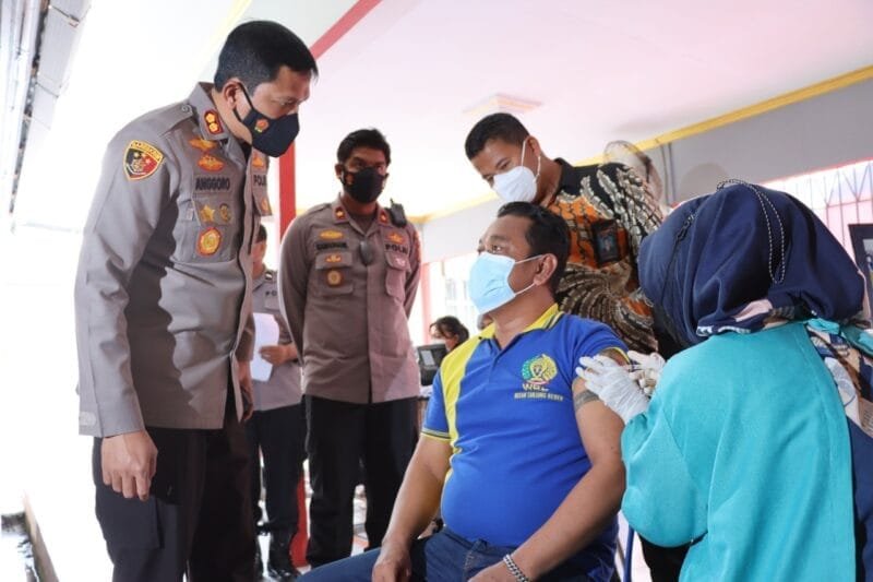 Berau – Kapolres Berau AKBP Anggoro Wicaksono didampingi Kepala Rutan Kelas IIB Tanjung Redeb, Puang Dirham, meninjau pelaksanaan vaksinasi di halaman Rutan Kelas IIB Tanjung Redeb, Kamis (3/2/2022).