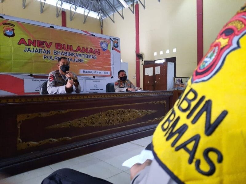 Seperti kegiatan anev kali ini, Senin (7/2/22) di Aula Mapolres. Nampak Kapolres Majene AKBP Febryanto Siagian di dampingi Kasat Binmas memberikan arahan sekaligus motivasi dan semangat agar kenerja para bhabinkamtibmas lebih dimaksimal.