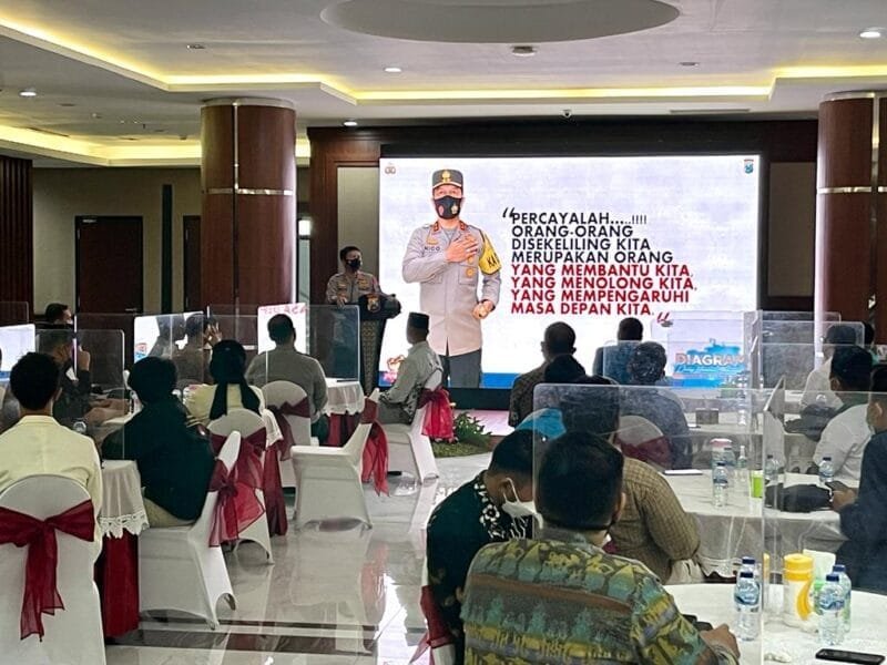 SURABAYA,- Kapolda Jawa Timur Irjen Pol Nico Afinta, bersama Wakapolda Jatim Brigjen Pol Slamet Hadi Supraptoyo, didampingi PJU Polda Jatim, Selasa (8/2/2022) pagi, melaksanakan dialog bersama mahasiswa (Diagram) guna menjalin komunikasi, koordinasi dan kolaborasi antara polisi dan mahasiswa untuk mendukung pelaksanaan tugas Polri.