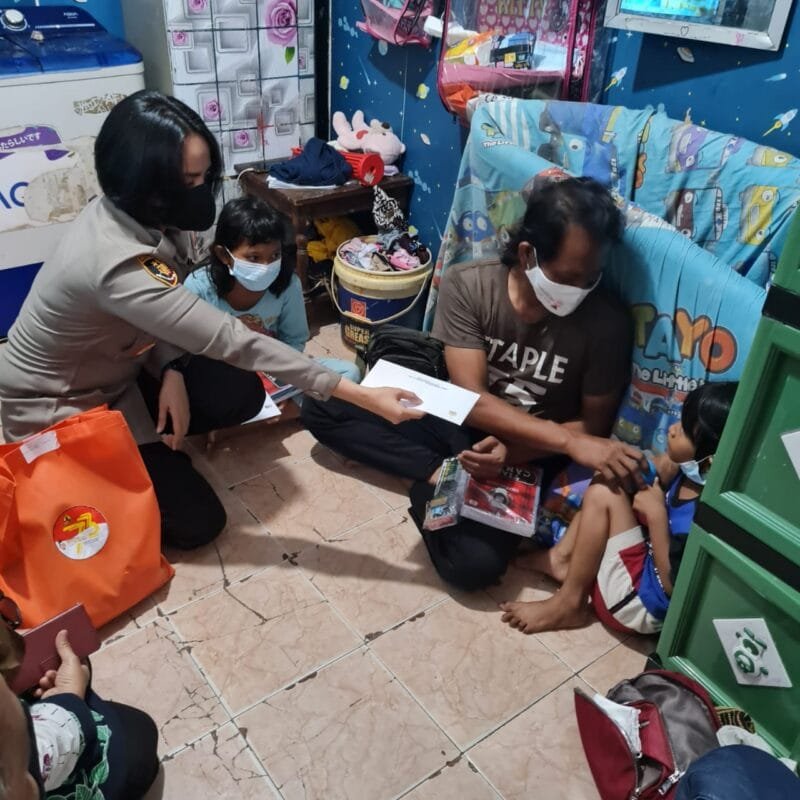 Adapun santuan yang diberikan, yakni berupa sembako, pakaian anak dan uang saku diserahkan kepada sang Ayah Slamet Sugiarto.