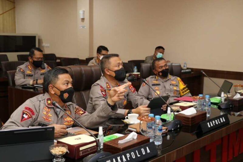 Dalam vicon tersebut, Kapolda Kaltim turut didampingi Wakapolda Kaltim Brigjen Pol Drs. Hariyanto, S.H., M.Hum, Karo Ops Polda Kaltim Kombes Pol Frans Barung Mangera, S.I.K., dan seluruh Pejabat Utama Polda Kaltim.