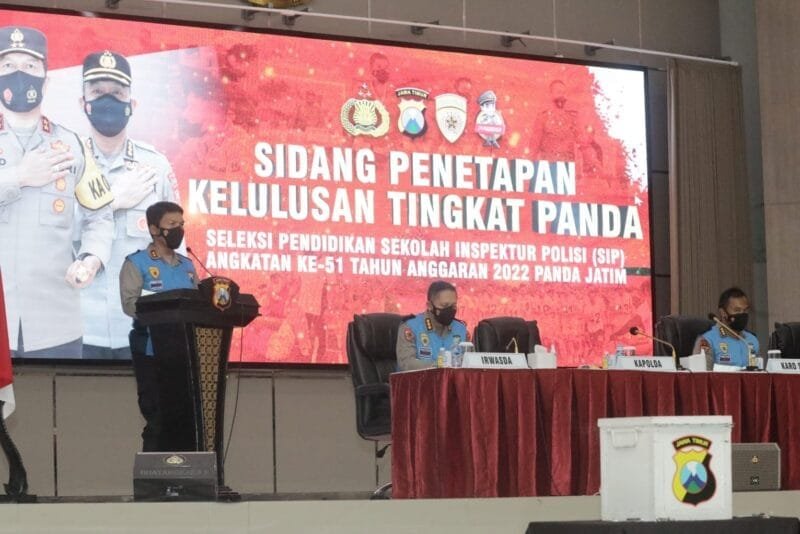 SURABAYA – Kapolda Jawa Timur Irjen Pol Nico Afinta, Jumat (25/2/2022) sore, memimpin pelaksanaan sidang penetapan kelulusan tingkat panda seleksi pendidikan Sekolah Inspektur Polisi (SIP) Angkatan ke-51 Tahun 2022 Polda Jatim. Kegiatan ini dilaksanakan di Gedung Mahameru Mapolda Jawa Timur.
