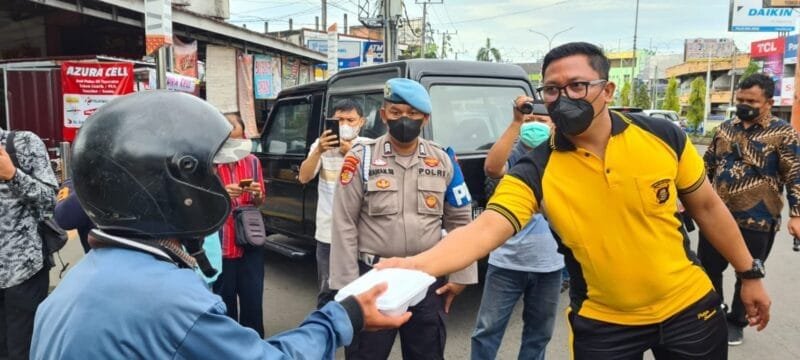 “Pembagian nasi kotak serta masker ini merupakan wujud kepedulian Polres Lubuklinggau, Kami keluarga Polres Lubuklinggau peduli dengan sesama untuk masyarakat kurang mampu di masa pandemi Covid -19 khususnya varian baru saat ini,”Ucap AKBP Harissandi .