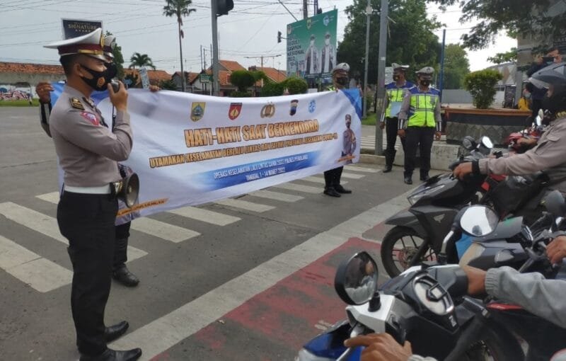 Pemalang – Polres Pemalang lebih mengedepankan kegiatan sosialisasi pada pengendara selama berlangsungnya Operasi Keselamatan Lalu lintas Candi 2022, para pengendara diimbau petugas untuk disiplin dalam mematuhi tata tertib berlalu lintas, serta tetap mematuhi protokol kesehatan Covid-19 selama perjalanan, Sabtu (5/3/2022).