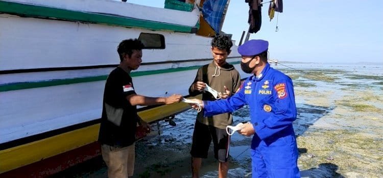 Seperti yang dilakukan oleh personil Ditpolairud Polda NTT dipimpin oleh Aipda Yoki Safitriyanto bersama 2 personil Ditpolairud Polda NTT menggunakan kapal patroli Polisi Flobamora XXII-3014 mengunjungi warga di pesisir pantai Nunbaun Sabu, Kota Kupang, Jumat (3/4/2022) guna memberikan imbauan prokes dan membagikan masker gratis guna memutuskan mata rantai penyebaran Covid-19.