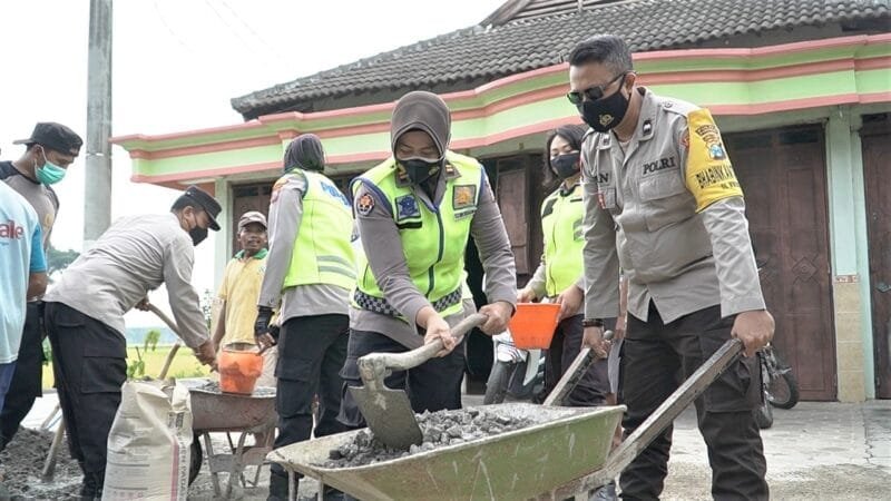 “Selain itu, kami juga berusaha membantu anggota Polsek Jetis untuk melakukan pengecoran di jalan yang berlubang dan bergotong royong dengan perangkat serta warga masyarakat Desa Ngasinan Kec.Jetis,” jelas Iptu Yayun.