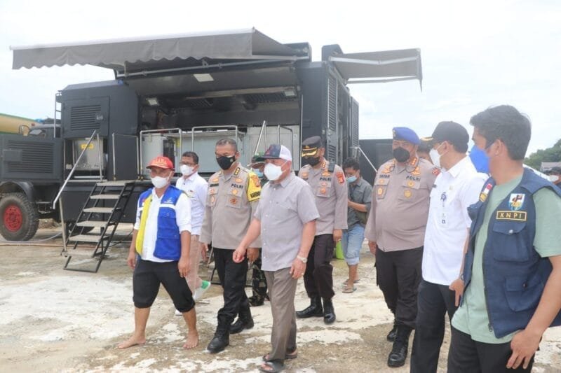 BALIKPAPAN — Sejumlah Pejabat Utama Polda Kaltim ikut mendampingi Gubernur Kaltim Isran Noor saat mengecek Kesiapan Dapur umum bagi Korban Banjir di Balikpapan, Rabu 16 Maret 2022.