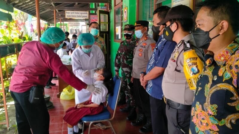 Polsek Kalangbret Tulungagung Kawal Swab Antigen Siswa dan Guru SD di Kauman