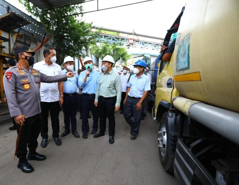 “Hari ini, kita mengecek langsung ke PT. Asianagro Agungjaya, mereka sampaikan hari ini mengeluarkan 800 ton per hari. Jadi kita ingin pastikan bahwa secara bertahap prosesnya. Kita melihat hari ini harga dengan harga eceran tertinggi yang ditentukan Pemerintah sudah berada di pasar. Dan tentunya secara bertahap diharapkan seluruh kebutuhan pasar tradisional, kebutuhan masyarakat terkait dengan minyak curah betul-betul tersedia,” kata Sigit dalam tinjauannya.