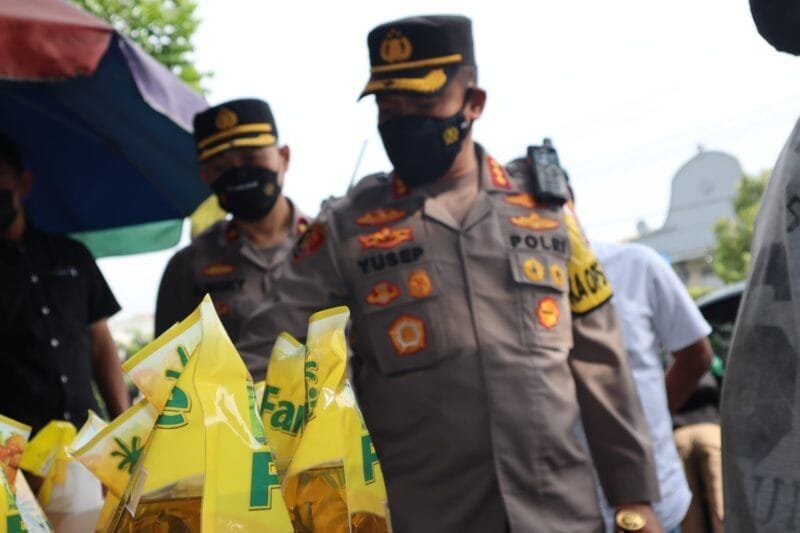 “Untuk di pasar ini hanya ada dua merek minyak goreng kemasan. Harga tiap toko sama Rp 47 ribu. Pemilik toko juga mengatakan pembelian mulai normal tidak seperti sebelumnya,”jelas Kombes Yosep.