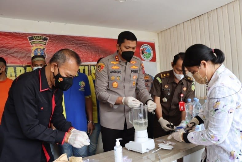 Musnahkan Barang Bukti, Polres Berau Blender Sabu Seberat 149,07 Gram