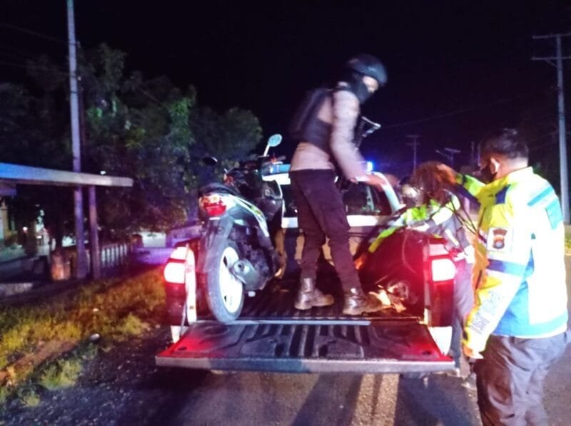 Kapolsek Urban Wonomulyo Kompol Adryan Frederick Kopong memimpin kegiatan patroli ini membenarkan bahwa pihaknya telah mengamankan 5 unit motor yang digunakan balapan liar, Kamis (07/04/22)