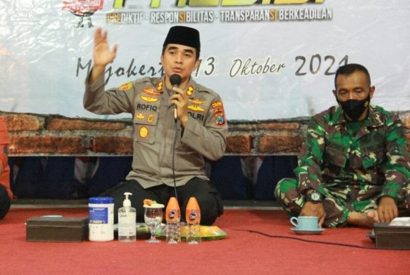 Guna memantapkan dukungan Polri dalam penanganan Covid-19 dan penguatan penanganan konflik sosial, Kapolresta Mojokerto menginisiasi kegiatan rakyat dengan nama CANDIMAS atau Cangkruan Diskusi Kamtibmas bareng Tokoh Lintas Agama, Tokoh Masyarakat, Kades Se Kecamatan, Ketua perguruan Silat dan Forkopimka Gedeg di Balai Kecamatan Gedeg Mojokerto. Rabu (13/10/21) Malam Kamis.