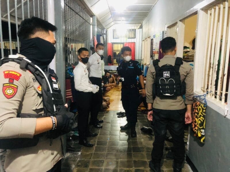 Majene – Kamar hunian rumah tahanan Kelas II Majene jadi target operasi Polres Majene membeckup petugas lapas untuk bersih-bersih barang-barang yang dapat menggangu keamanan dan ketertiban di dalam Lapas, Selasa (19/4/22).