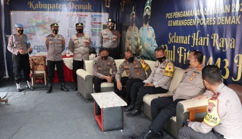 Demak – Kepala Kepolisian Resor Demak AKBP Budi Adhy Buono mengecek kesiapan Pos Pengamanan (Pos Pam) dalam Operasi Ketupat Candi tahun 2022 dalam rangka pengamanan menjelang Hari Raya Idul Fitri 1443 H, Minggu (24/4/2022).