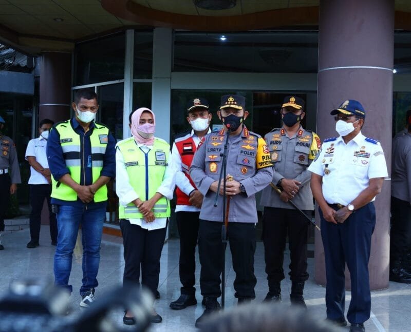 Merak – Lensapolri. Com— Kapolri Jenderal Listyo Sigit Prabowo meninjau arus mudik di Pelabuhan Merak, Banten, Sabtu, (30/4/2022). Dalam tinjauannya, Kapolri memantau baik melalui udara dan mendengarkan langsung pemaparan langsung dari otoritas setempat terkait dengan penanganan serta pengendalian arus mudik.