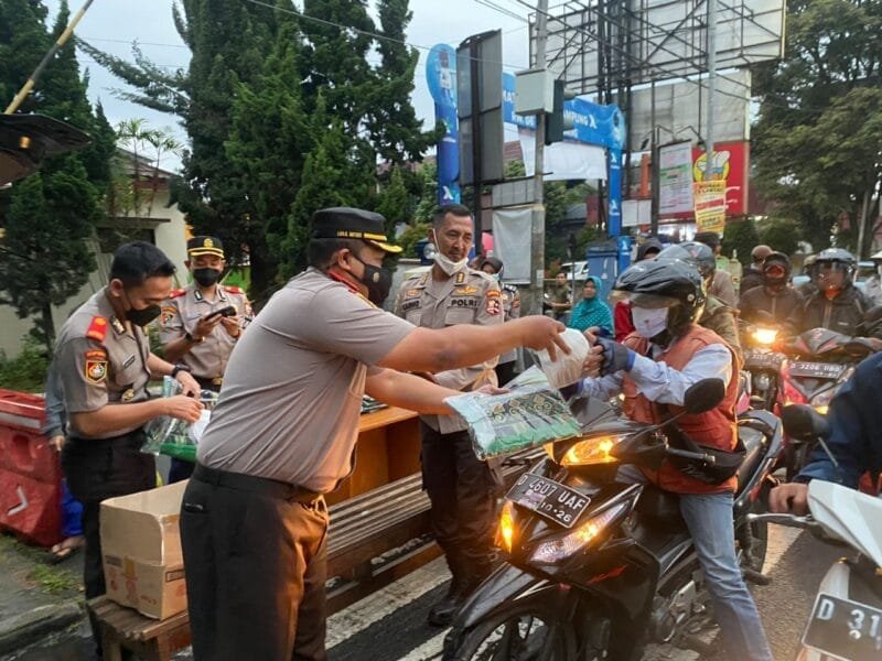 Lembang , Bandung– Lensapolri.Com– Peserta Didik (Serdik) Sekolah Staf dan Pimpinan Menengah (Sespimmen) Polri Ke-62 Membagikan Paket Takjil dan Sejadah Kepada Warga yang Melintas di Depan Mapolsek Lembang, Kabupaten Bandung Barat, Provinsi Jawa Barat, Senin (25/4/2022).