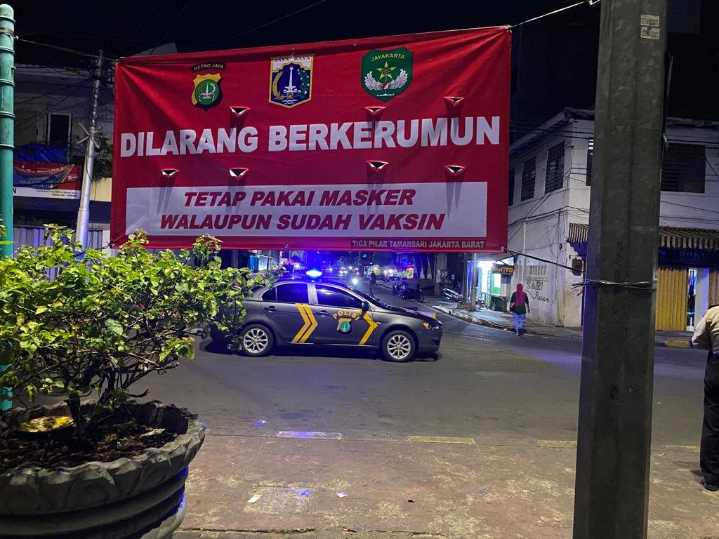JAKARTA, Polsek Metro Taman Sari Jakarta Barat memberlakukan sistem crowd free night (CFN) guna mengantisipasi kerumunan di masa PPKM level 3 di kawasan kota tua jalan kunir Pinangsia taman sari Jakarta Barat, Kamis, 16/9/2021.