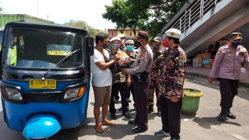 Bantuan tersebut diberikan kepada para sopir bajaj baik yang sedang mangkal maupun yang sedang melintas