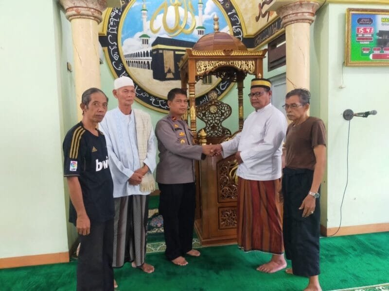 Kali ini polsek Kalideres mendatangi mesjid Al amin kp buaran rt 01/08 kel Kalideres Jakarta Barat dan memberikan bantuan mimbar masjid, Kamis, 2/6/2022.