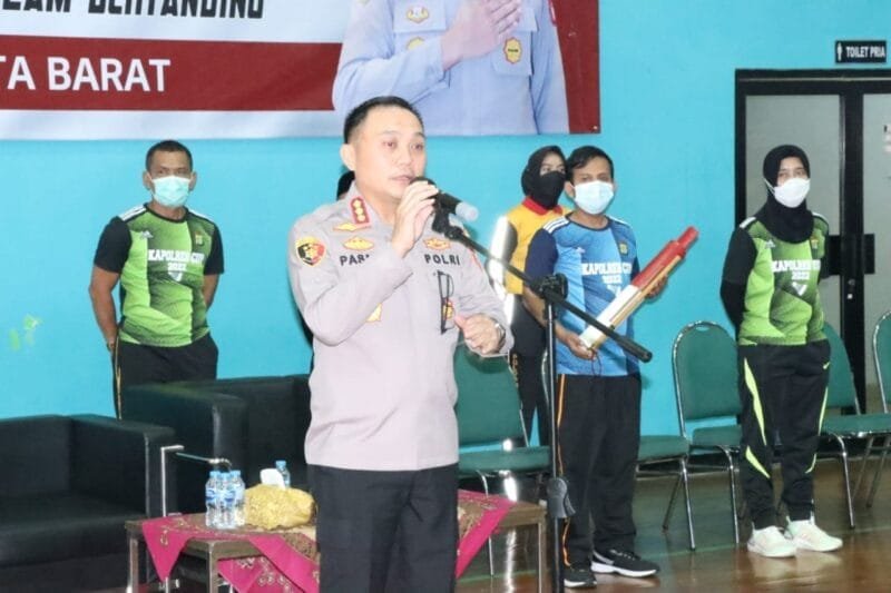JAKARTA, Lensapolri.Com– Menyambut Hut Bhayangkara ke 76, Polres Metro Jakarta Barat menggelar lomba badminton kapolres cup tahun 2022, Jumat, 3/6/2022.