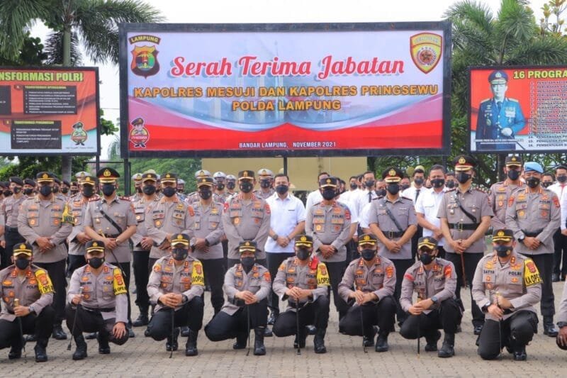 Prosesi serah terima jabatan (Sertijab) dipimpin langsung Kapolda Lampung Irjend Pol Drs Hendro Sugiatno, MM di Mapolda Lampung. Kamis (18/11/21)
