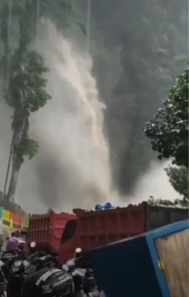 Dari beberapa video yang juga beredar, terlihat debit air di objek wisata air terjun itu cukup besar. Beberapa pengendara tidak berani melintas karena tingginya air yang meluap ke jalan.