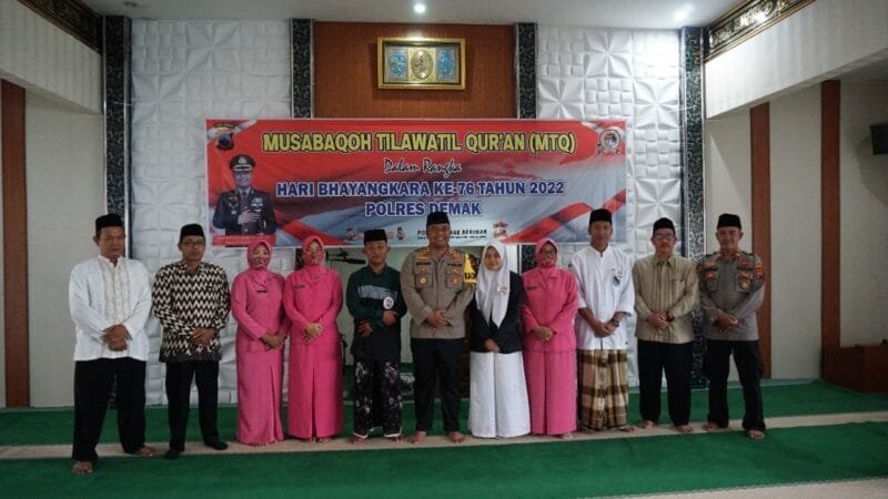 Lomba MTQ dilaksanakan selama tiga hari dimulai tanggal 14 sampai 16 Juni 2022, lomba MTQ diikuti oleh 14 perwakilan dari Polsek Jajaran Polres Demak.