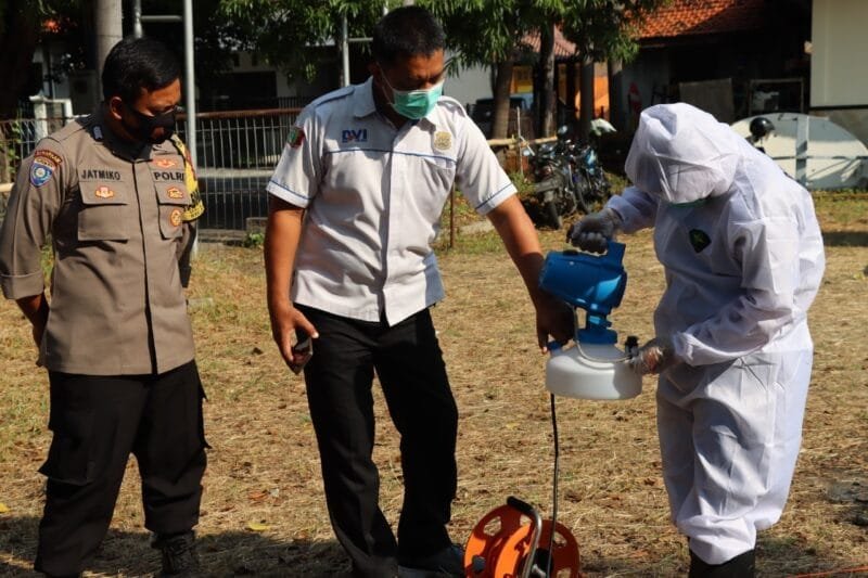 ”Penyemprotan disinfektan ini sebagai upaya pencegahan PMK di Gresik,” tegas Kapolres Gresik AKBP Mochamad Nur Azis, Sabtu (09/07/2022).