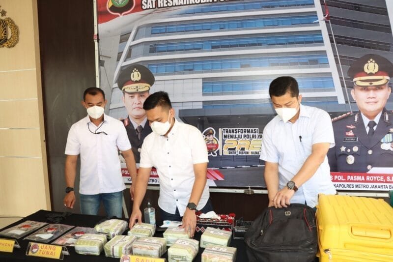 Kapolres Metro Jakarta Barat Kombes Pol Pasma Royce didampingi Kasatres Narkoba Akbp Akmal mengatakan, kami berhasil menggagalkan peredaran gelap Narkoba jaringan internasional Malaysia – aceh – Pekanbaru – Jakarta