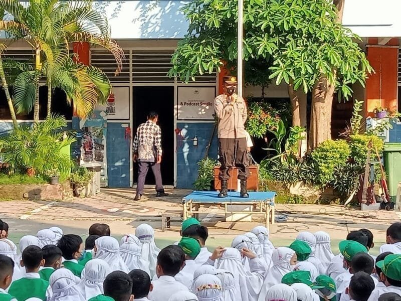 Gresik – Lensapolri.com–Banyaknya pelajar yang menggunakan handphone hingga tingkat Sekolah Dasar (SD) membuat Kasat Binmas Polres Gresik AKP Sujiran memberikan pesan. Pesan diberikan kepada para pelajar di SD Muhammadiyah 1 dan 2 Kabupaten Gresik, Selasa (19/07/2022).