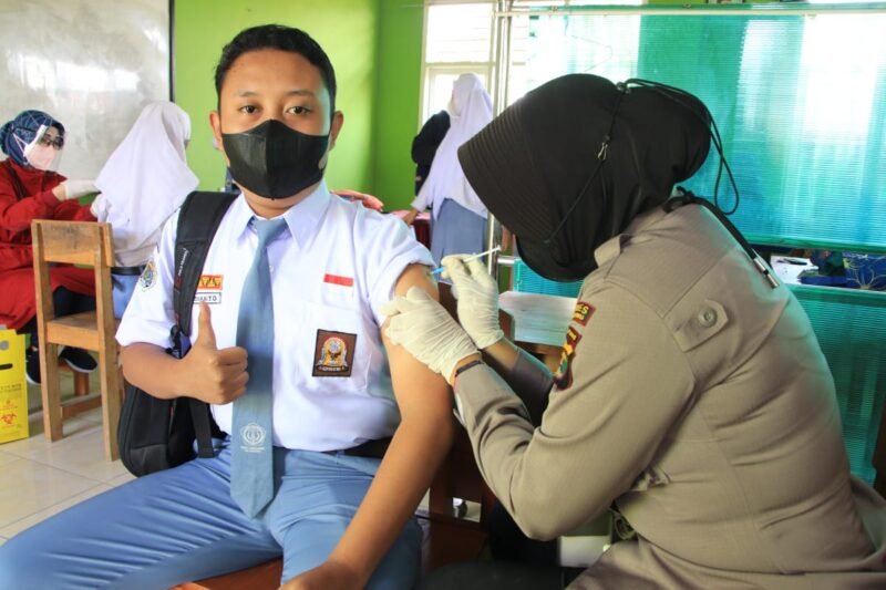 Pringsewu Lensapolri. Com Dalam mendukung percepatan vaksinasi, Polres Pringsewu mengadakan kegiatan vaksinasi Goes to campus tahap pertama di SMA N 1 Pringsewu- Lampung. Selasa (28/9/2021).