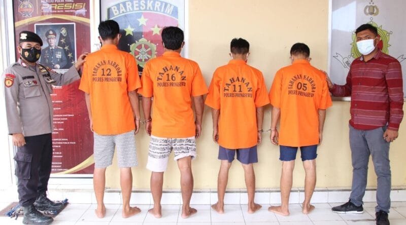 “Dalam proses penyidikan keempat tersangka disangkakan melanggar pasal 112 Undang-Undang Nomor 35 Tahun 2009 tentang Narkotika dengan ancaman hukuman paling singkat 4 tahun dan maksimal 12 tahun penjara.” Tandasnya.