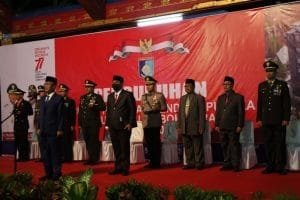 Rangkaian kegiatan dipimpin Bupati Lombok Barat H. Fauzab Khalid S.Ag M.Si dengan melakukan pengukuhan pasukan pengibar bendera pusaka disertai dengan Penyematan “Merah Putih Garuda”