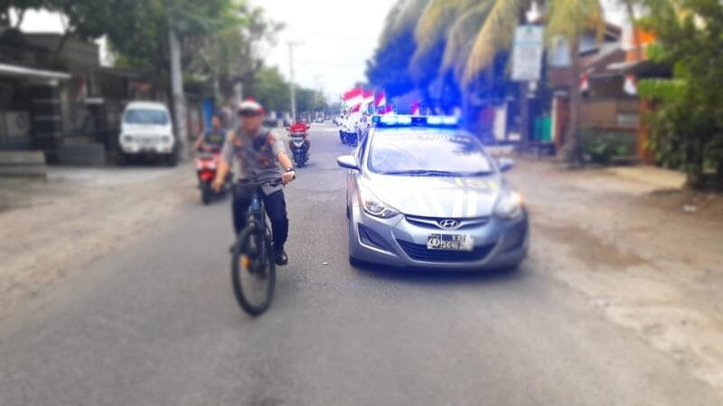 ” Dalam perjalanan peserta jalan sehat kami kawal bersama Unit Patroli Polsek Pagutan dengan semangat peserta menyanyikan Lagu Kemerdekaan 17 Agustus “