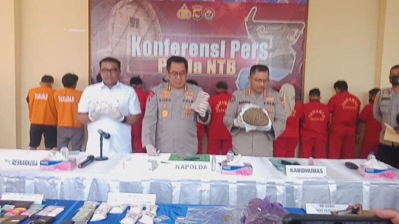 Selain Kapolda NTB Konferensi pers yang diselenggarakan di Command center Polda NTB tersebut dihadiri oleh Kabid Humas Polda NTB Kombes Pol Artanto, Direktur Resnarkoba Polda NTB Kombes Pol Dedi Supriyadi SIK MIK, serta para tersangka yang telah diamankan(19/08/22)