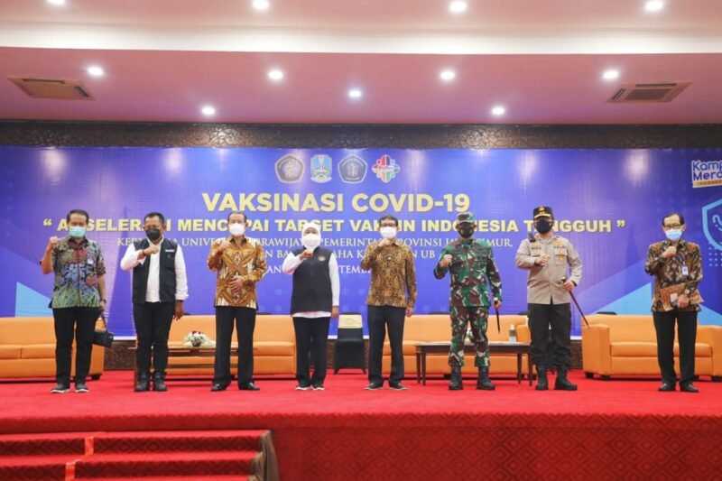 Forkopimda Jawa Timur terus kejar capaian target vaksinasi. Kali ini sebanyak 2000 dosis vaksinasi di salurkan untuk Mahasiswa di Universitas Brawijaya (UB) dan Masyarakat Malang Raya, pada Sabtu (18/9/2021) di Gedung Samanta Krida Universitas Brawijaya.