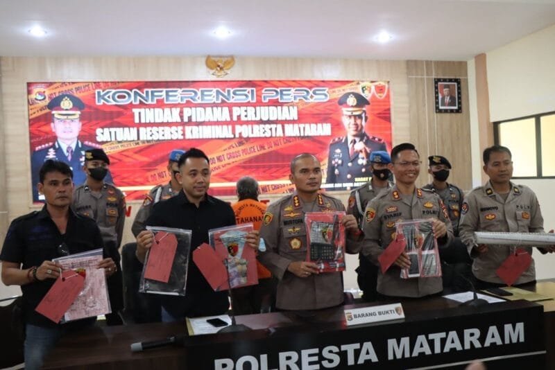 LENSAPOLRI.COM, -MATARAM NTB – Seorang bandar Togel Online beserta seorang anak buahnya digelandang ke Mapolresta Mataram karena terbukti melakukan perjudian jenis Togel Online di wilayah Ampenan Kota Mataram.