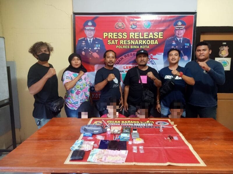 Tim Cobra Bravo Sat Narkoba Polres Bima Kota Polda NTB, dibawah pimpinan Katim Aipda Awaluddin Syah Putra dan anggotanya, Selasa (23/8) sore, menangkap 4 terduga pemilik dan yang menguasai narkotika jenis sabu-sabu di dua TKP.