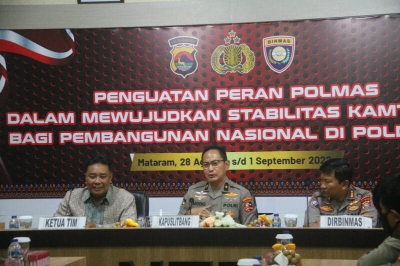 “untuk melakukan penguatan pemolisian masyarakat, Kapuslitbang bersama tim peneliti akan melakukan supervisi terhadap Ditbinmas dan Biro SDM Polda NTB,” jelas Kabid Humas Polda NTB.