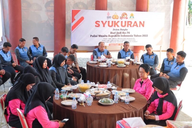 Di hari jadinya yang ke-74, Polwan Polres Mamuju Tengah mengadakan acara syukuran dengan pemotongan tumpeng yang diadakan di Lobi Polres Mamuju Tengah dengan tema “Polri Yang Presisi, Polwan Siap Mendukung Pemulihan Ekonomi Dan Reformasi Struktural Mewujudkan Indonesia Tangguh – Indonesia Tumbuh”, Jumat (2/9/2022).