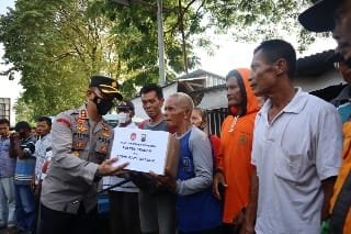 Penyaluran bantuan sosial diberikan langsung Kapolres AKBP Piter Yanottama bersama jajaran Forum Komunikasi Pimpinan Daerah (Forkopimda) Sragen, di sejumlah lokasi kabupaten Sragen, Senin (05/09/2022) sore.