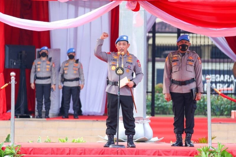 LENSAPOLRI.COM, JAKARTA – Kapolri Jenderal Listyo Sigit Prabowo memimpin Upacara pelepasan pasukan perdamaian Kontingen Garuda Bhayangkara Satgas FPU 4 Minusca di Lapangan Bhayangkara, Jakarta Selatan, Selasa (6/9).