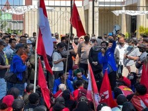“Massa unjuk rasa menyampaikan tuntutan penolakan harga BBM,” kata Nico.