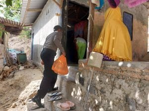 Pasca dengan kenaikan harga Bahan Bakar Minyak (BBM) Bhabinkamtibmas Desa kemuning Brigadir L Aris Munandar Anggota polsek sekongkang wilayah Polres Sumbawa Barat Polda NTB. Membagikan bantuan sosial berupa paket sembako kepada warga lansia yang kurang mampu.