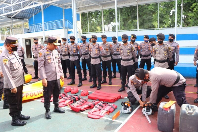 Dalam kegiatan Selasa pagi (18/10/2022) seusai apel pagi, untuk mendukung kesiapan dalam penanggulangan bencana tersebut Sat Samapta Polres Sumbawa menggelar berbagai peralatan Search and Rescue (SAR) seperti perahu karet, dayung, rompi pelampung, tali, sepatu boots dan chainshow diperiksa guna memastikan nantinya alat-alat tersebut benar-benar siap digunakan.